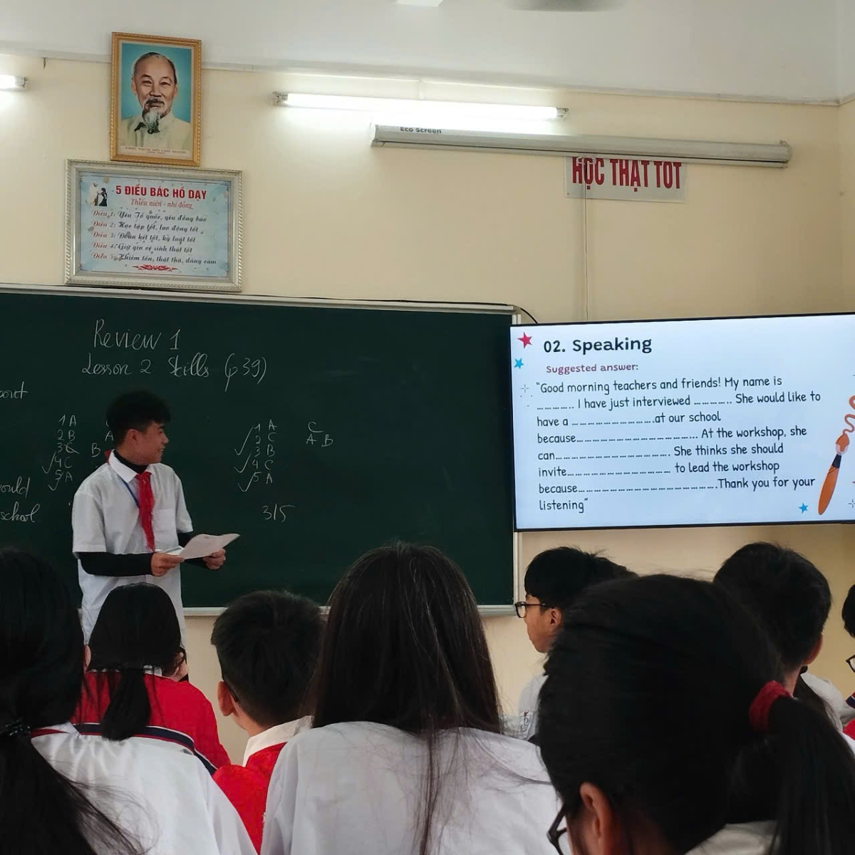 Cô Nguyễn Thị Xuyến với bài “Unit 3 – Skills 2” (lớp 6A1), đã vận dụng linh hoạt các hoạt động nhóm và trò chơi học tập, giúp học sinh rèn luyện kỹ năng nghe – viết hiệu quả.