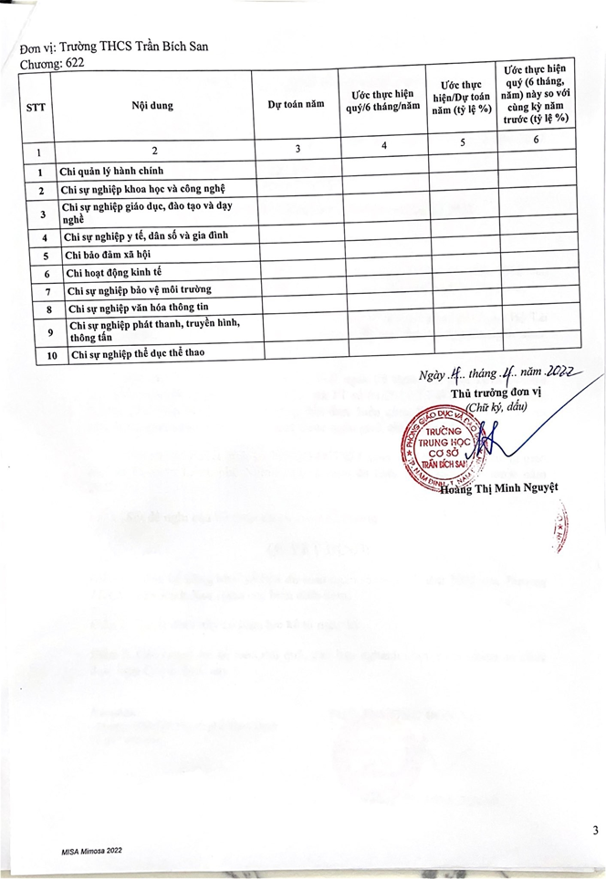 Ngày 4/04/2022, Trường THCS Trần Bích San công khai quyết toán quý I năm 2022!