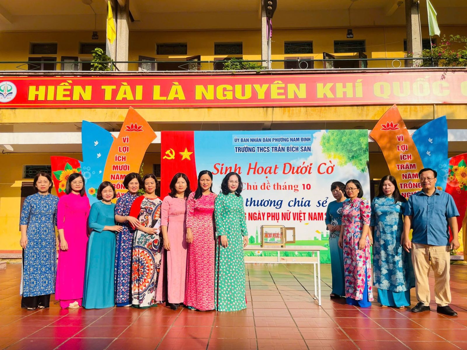 Ảnh: Cô Hoàng Thị Minh Nguyệt – Hiệu trưởng, cô Đặng Thị Ánh Tuyết – Phó HT cùng các thầy cô trường THCS Trần Bích San Xin tri ân tất cả những tấm lòng vàng của thầy cô, quý phụ huynh và các em học sinh – những người đã góp phần thắp sáng niềm tin, làm đẹp thêm hình ảnh ngôi trường thân yêu giữa lòng phường Nam Định trên mảnh đất Ninh Bình giàu truyền thống yêu thương và nhân ái./.